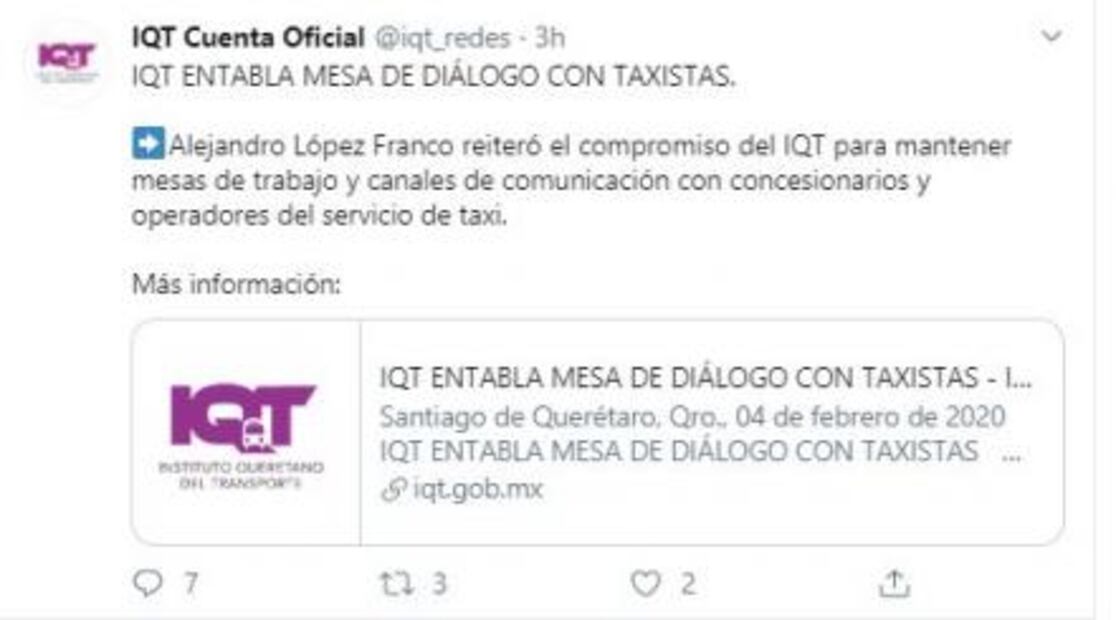 Al respecto, a través de un comunicado, el Instituto Queretano del Transporte (IQT) informó que mantiene mesas de diálogo para atender a las demandas del gremio.