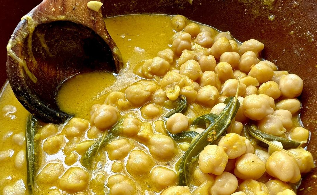 Este platillo sencillo, pero sabroso, tiene en su base un ingrediente humilde, pero lleno de carácter: el garbanzo. Sin embargo, lo que realmente le da el toque único es la inclusión del azafrán silvestre, una especia local que le aporta tanto un color amarillo vibrante como también un sabor profundo y aromático.